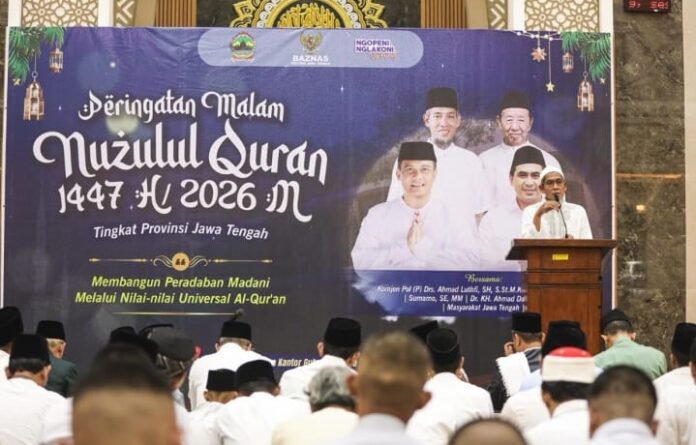 Ajakan tersebut disampaikan saat mengikuti Tarawih Keliling (Tarling) Ramadan 1447 H/2026 M putaran ke-10, yang dirangkai dengan peringatan Nuzulul Quran tingkat Provinsi Jawa Tengah, di Masjid At-Taqwa Kantor Gubernur Jateng, Kota Semarang, Senin, 9 Maret 2026.