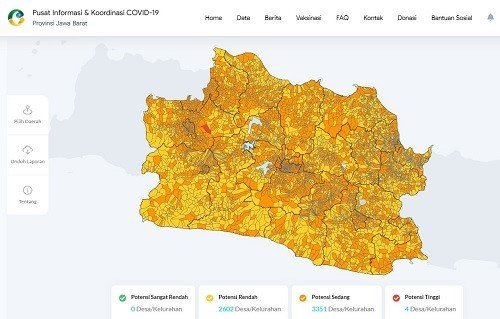 Kini, peta interaktif Covid-19 dapat diakses oleh publik melalui situs Pusat Informasi dan Koordinasi Covid-19 Jawa Barat (Pikobar) di laman (https://pikobar.jabarprov.go.id/transmission-potential). Melalui peta ini, publik dapat mengidentifikasi desa-desa di Jawa Barat berdasarkan tingkat potensi serta risiko terhadap penularan Covid-19.