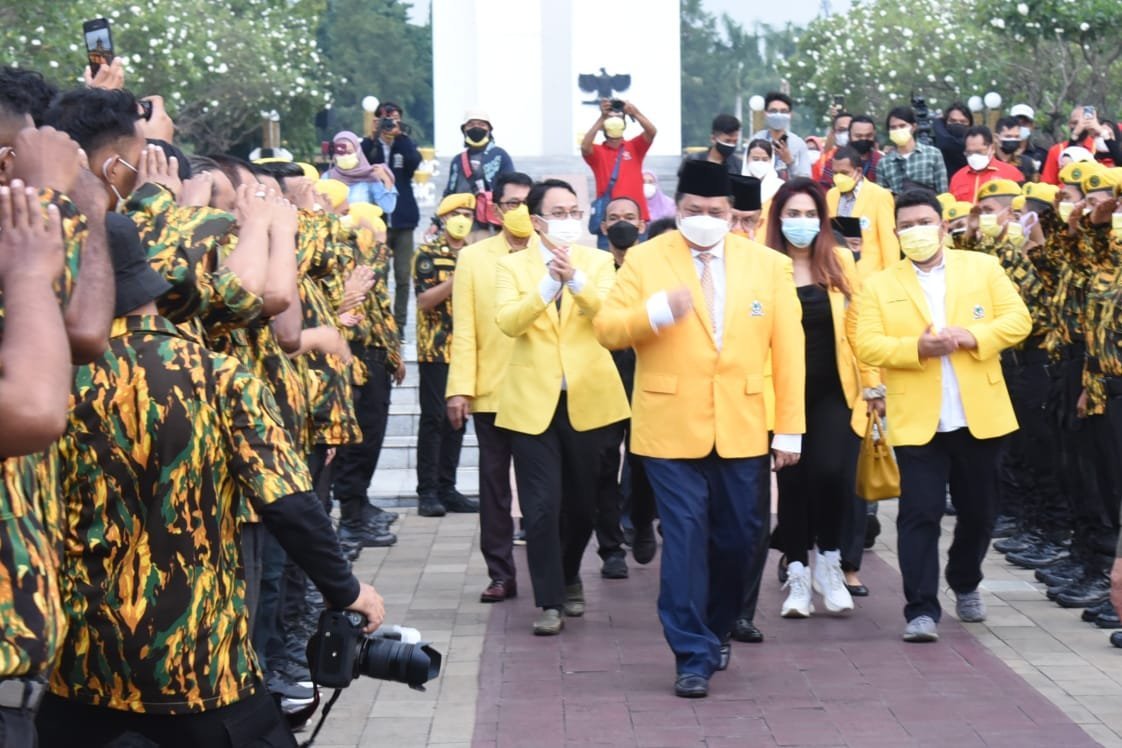 “Dan itu menjadi beban yang harus dijalankan seluruh kader Partai Golkar, baik yang ada di pemerintah, DPR, Gubernur, Wali Kota, Bupati, Pimpinan DPRD, dan seluruh kader Partai Golkar yang lain, termasuk yang bergerak di bidang swasta, di bidang usaha,” ujarnya.