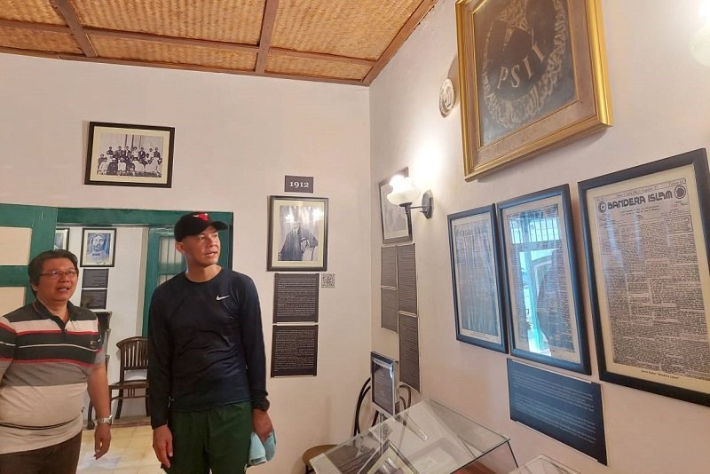 “Nah inilah rumah kos Bung Karno. Ternyata pemiliknya semua orang tahu, HOS Tjokroaminoto, itu menarik tulisannya Guru Para Pendiri Bangsa. Jadi ini bukan guru para pendiri tetapi mbahnya founding father,” kata Ganjar.