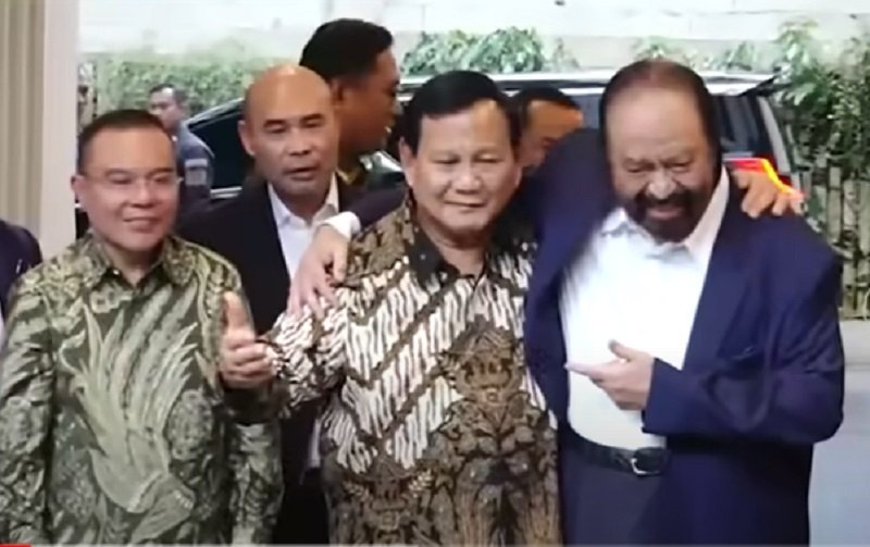 Adapun Prabowo menerima kedatangan Surya Paloh sore hari penuh kehangatan. Pertemuan seperti ini juga sempat terjadi kala Prabowo menyambangi Surya Paloh di NasDem Tower pada Jumat (22/3) lalu. Keduanya saling memeluk dan memberi salam hormat.