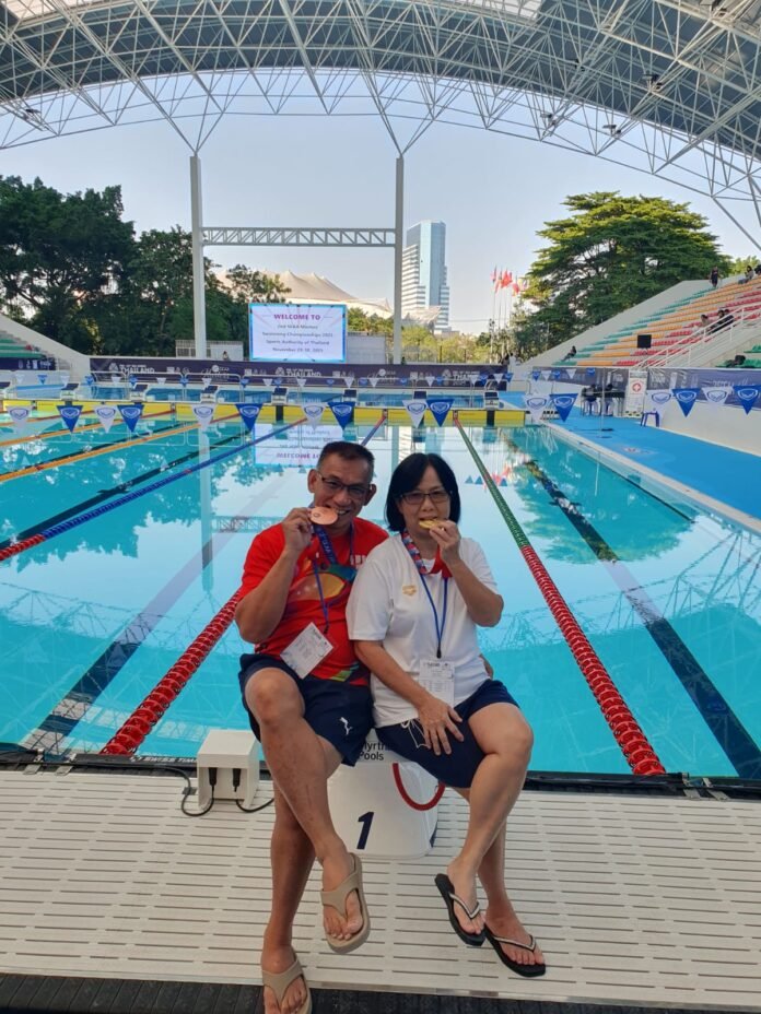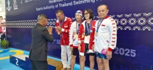 JATENGPOS.CO.ID-Usia bukanlah menjadi halangan bagi seorang atlet renang untuk mengukir prestasi. Apalagi paket prestasi ini diukir oleh pasangan suami istri Nugroho Darmawan (65) dan Lani Setiawati (62). Di usia yang sudah tidak muda lagi, dimana yang lain umumnya masa menikmati hidupĀ tapi tidak berlaku untuk pasangan berprestasi ini. Justru di usia senja malah meraih prestasi mendunia. Darmawan berhasil meraih 4 perunggu dan Lani Setiawati meraih 1 emas dan 1 perunggu di Thailand Master 29 ā 30 November 2025 lalu dalam event South East Asia Aquatic Master Swimming Championship di Thailand.