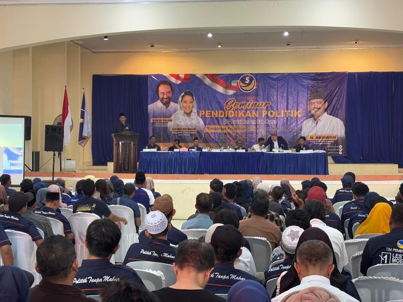 Diawal kepemimpinannya, Akhwan menggelar kegiatan pendidikan politik bagi kader-kadernya, di Gedung Budaya Bae, Minggu (3/8). Total ada sekitar 500-an kader NasDem Kudus yang hadir.