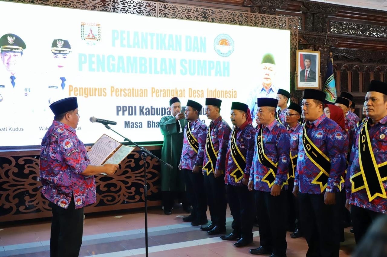 JATENGPOS.CO.ID, KUDUS – Pelantikan dan pengambilan sumpah Pengurus Persatuan Perangkat Desa Indonesia (PPDI) Kabupaten Kudus masa bakti 2025–2030, digelar di Pendapa Kabupaten Kudus. Turut hadir Bupati Kudus, Sam’ani Intakoris dan prosesi dipimpin Ketua PPDI Jawa Tengah, Herry Purnomo, Selasa (2/9).