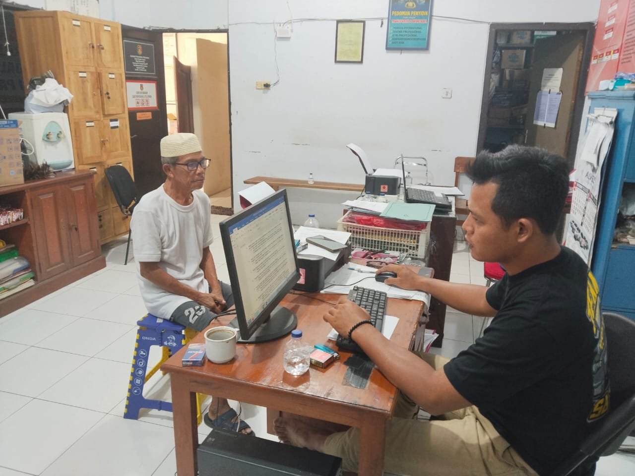 Sesuai janjinya, menantu pelaku dan pelaku hadir di Masjid Baitul Hidaya. Di serambi masjid setempat, pelapor, pengurus masjid, perangkat Desa Menawan, serta anggota Babinkamtibmas dan Nabinsa melakukan introgasi terhadap pelaku. Awalnya pelaku tidak mengakui, namun setelah di desak pelaku baru mengakui perbuatanya.