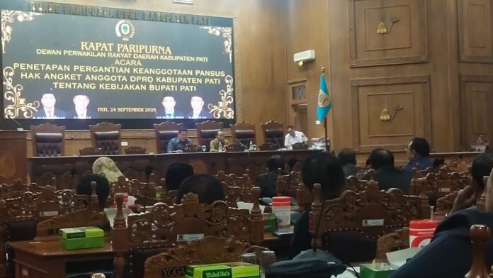 JATENGPOS.CO.ID, PATI – Dewan Perwakilan Rakyat Daerah (DPRD) Kabupaten Pati resmi mengganti anggota Pansus dari Fraksi PDI Perjuangan pada Rabu (24/9) siang. Pergantian anggota Pansus tersebut dilakukan di ruang Rapat Paripurna DPRD Kabupaten Pati.