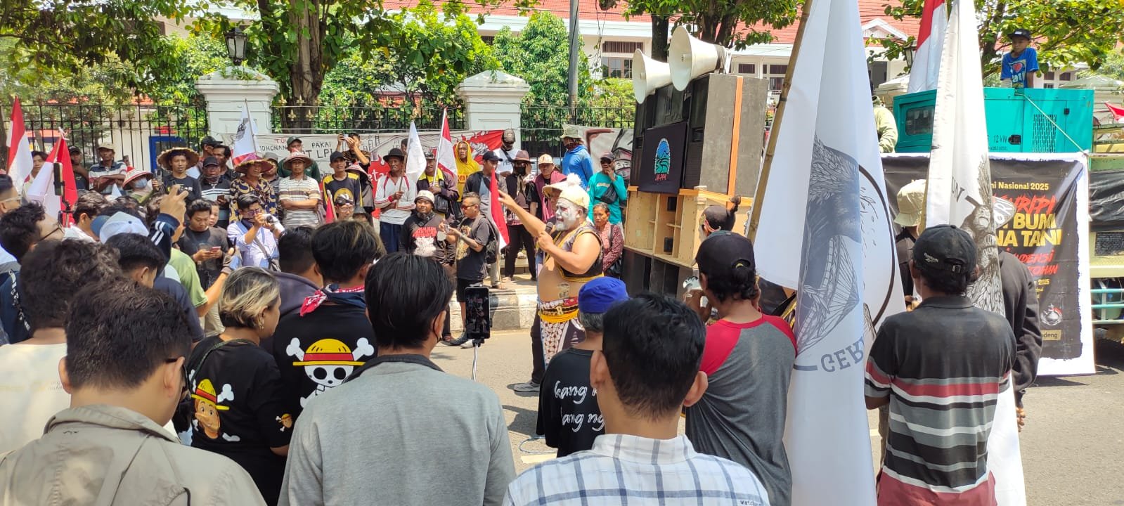 Salah satu koordinator aksi, Gunretno memaparkan demo ini untuk memperingati Hari Tani Nasional yang diperingati setiap tanggal 24 September. Setidaknya ada tiga tuntutan dalam aksi ini.