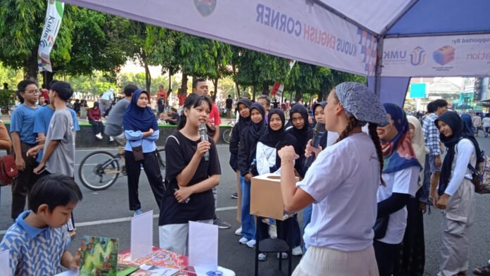 JATENGPOS.CO.ID, KUDUS – Suasana Car Free Day (CFD) di kawasan Alun-alun Kudus, Minggu (28/9/2025) tampak berbeda dari biasanya. Menyusul hadirnya seorang Native Speaker (penutur asli, red) Asal Prancis, dalam program Kudus English Corner (KEC). Hadirnya warga asing tersebut pun menyita perhatian banyak pengunjung even akhir pekan tersebut.