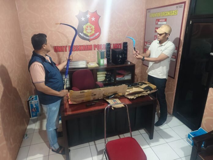 Informasi tersebut kemudian ditindaklanjuti oleh Polsek Jati, dengan melakukan pengumpulan bahan keterangan. Dari hasil pemeriksaan, petugas mendapati paket berisi 2 bilah parang panjang berukuran sekitar 145 sentimeter dan satu bilah celurit kecil berukuran sekitar 30 sentimeter.