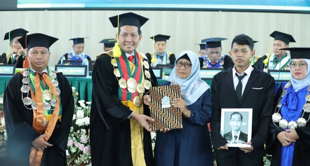“Pada momentum wisuda ini, kita tidak hanya merayakan keberhasilan para lulusan, tetapi juga mengenang salah satu mahasiswa terbaik kami. Prestasi akademik almarhum Muhammad Faiz Anwar adalah bukti ketekunan dan kesungguhan yang patut kita hormati bersama,” tutur Rektor.