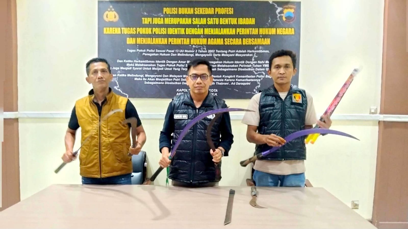 Dalam operasi maraton tersebut, polisi berhasil menyita sejumlah senjata tajam yang sedianya akan digunakan untuk tawuran. Selain itu, petugas mengidentifikasi 12 sepeda motor yang digunakan para pelaku, di mana beberapa di antaranya merupakan kendaraan dengan plat nomor luar kota, seperti Pati dan Semarang.