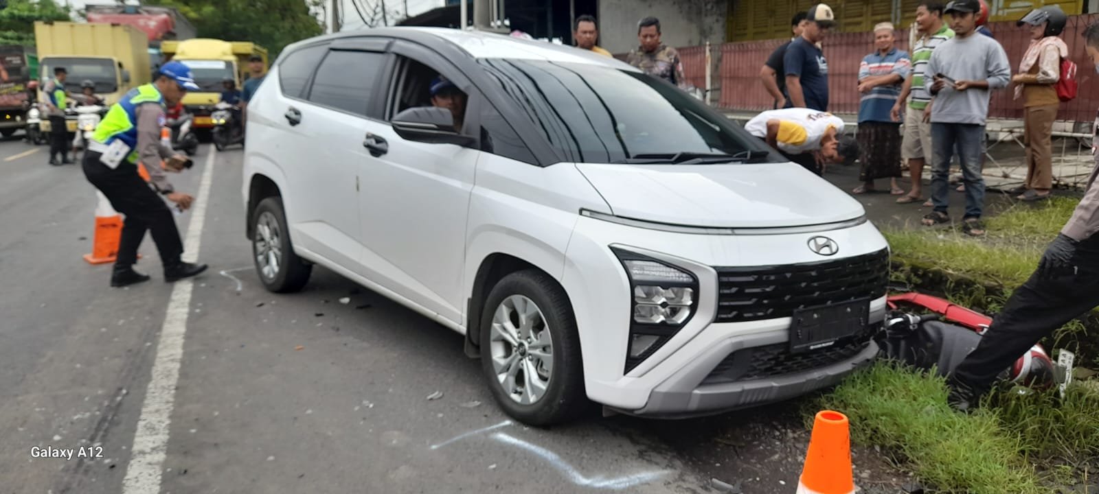 Motor Scoopy tersebut kembali terpental dan berbenturan dengan mobil Hyundai Stargazer K-18XX-RA yang juga melaju di belakang Yamaha Gear. Tim Satlantas Polres Kudus yang tiba di lokasi segera melakukan olah Tempat Kejadian Perkara (TKP), mencatat keterangan saksi, dan mengamankan barang bukti.