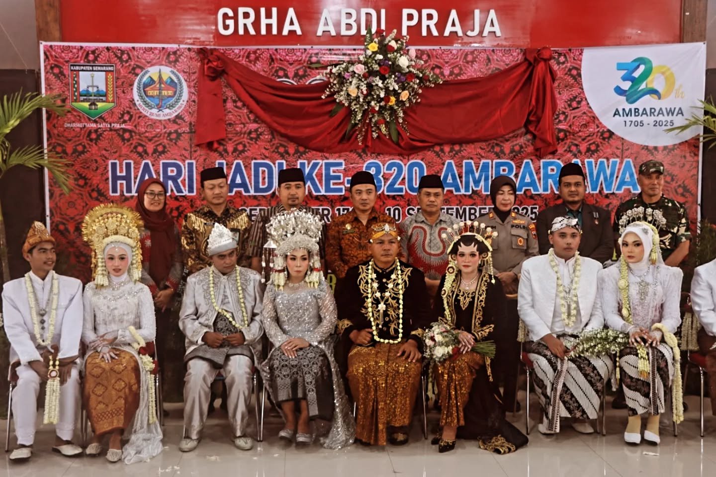 JATENGPOS.CO.ID, UNGARAN- Panitia peringatan Hari Jadi ke-320 Ambarawa menggelar acara nikah massal. Resepsi pernikahan diselenggarakan secara sederhana di Pendapa Grha Abdi Praja Kantor Camat Ambarawa, Selasa (10/9/2025) siang.