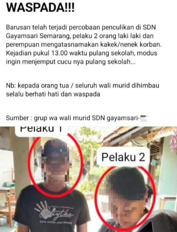 “Polrestabes Semarang memastikan kabar percobaan penculikan anak di Gayamsari adalah hoaks. Kami mengajak masyarakat untuk tidak langsung percaya dan menyebarkan informasi yang belum terverifikasi, karena dapat menimbulkan keresahan publik,” tegas Kompol Agung.