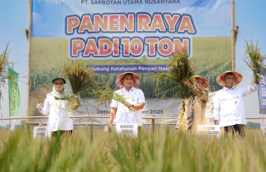 “Artinya menjadi sekira 987.468 hektare,” kata Taj Yasin, mewakili gubernur Jateng Ahmad Luthfi dalam lomba panen padi 10 ton per hektare se-Kecamatan Wonosalam, di Desa Tlogodowo, Kabupaten Demak, Rabu 15 Oktober 2025.