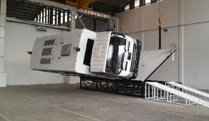 “Pengujian kali ini agak spesial karena dilakukan bukan pada bus, tetapi kendaraan Manhauler. Pengujian menggunakan kendaraan utuh 100 persen, baik interior maupun eksterior apa adanya, tidak hanya berupa rangka saja,” ungkapnya
