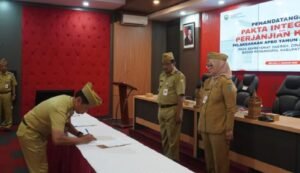 Pada kesempatan itu pula dilakukan penandatanganan pakta integritas pelaksanaan APBDes oleh 208 Kepala Desa.