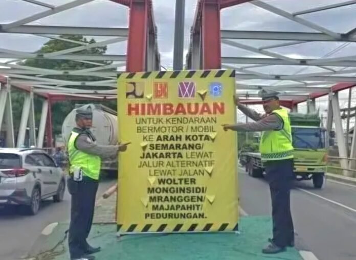 “Dari arah Kota Semarang, mulai dari jembatan Tol Kaligawe, kami sarankan melewati Tol Gayamsari (untuk pengendara mobil), dan untuk pengendara motor bisa melalui Pedurungan menuju jalan Wolterwonginsidi,” terang Kasatlantas.