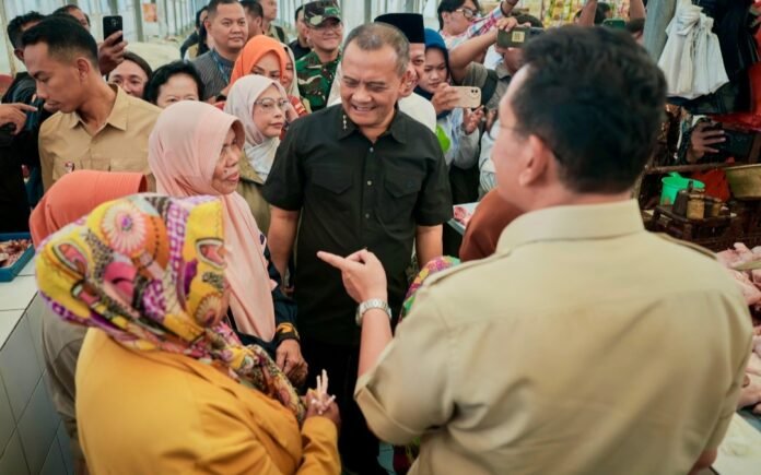 JATENGPOS. CO. ID, KUDUS – Menteri Perdagangan Budi Santoso bersama Gubernur Jawa Tengah Ahmad Luthfi turun langsung memantau harga dan ketersediaan bahan pokok di Pasar Baru Kudus, Kamis (12/3/2026). Pemerintah memastikan harga tetap terkendali dan pasokan pangan aman menjelang Hari Raya Idulfitri.