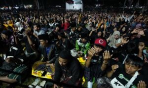 Meski hujan sempat mengguyur lokasi sejak sore hingga menjelang acara ԁimulai, antusiasme jamaah tidak surut. Ribuan peserta tetap bertahan dan mengikuti kegiatan dengan khidmat.