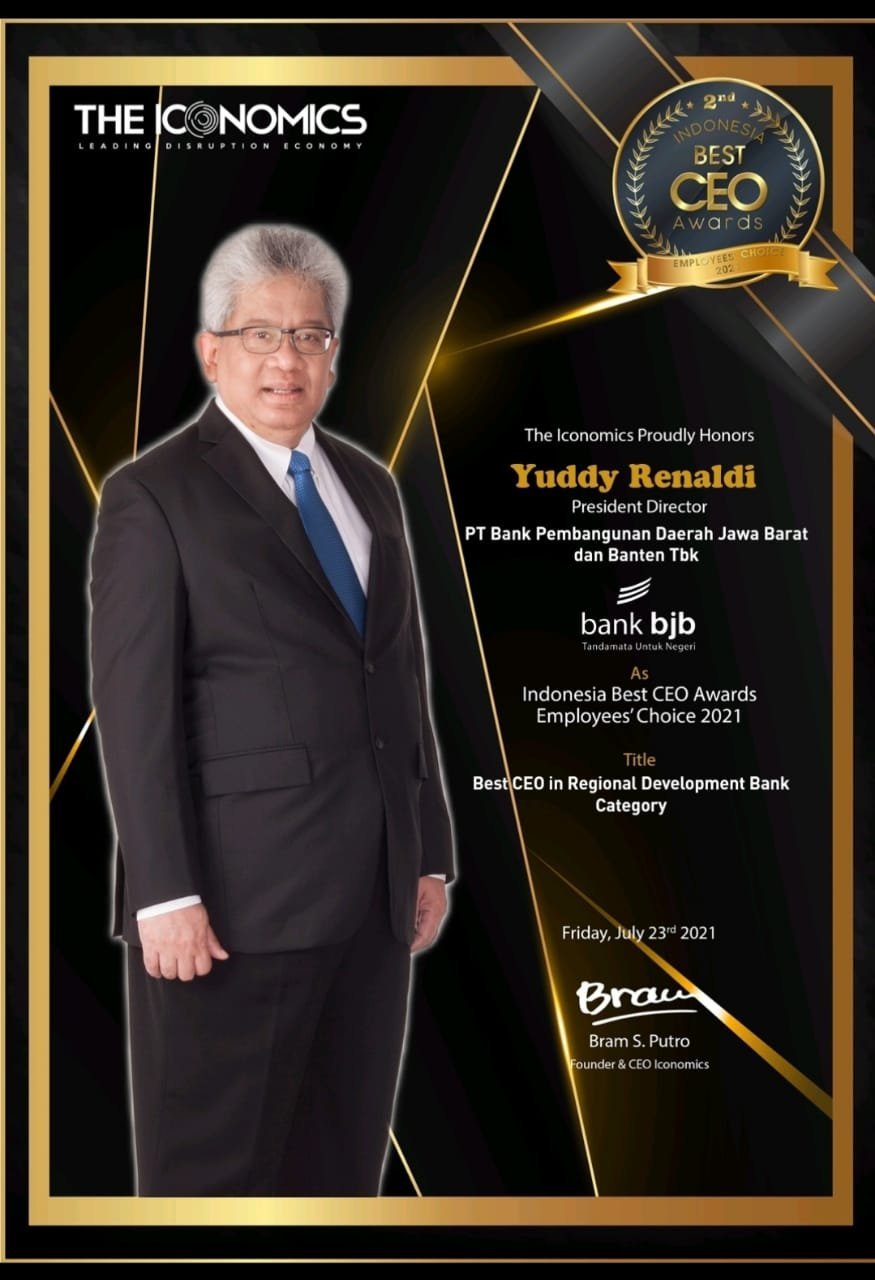 JATENGPOS.CO.ID, BANDUNG — Direktur Utama PT Bank Pembangunan Daerah Jawa Barat dan Banten Tbk (bank bjb), Yuddy Renaldi berhasil meraih predikat “Indonesia Best CEO Award 2021- Employees’ Choice, dalam Regional Development Bank Category atau Kategori Bank Pembangunan Daerah.