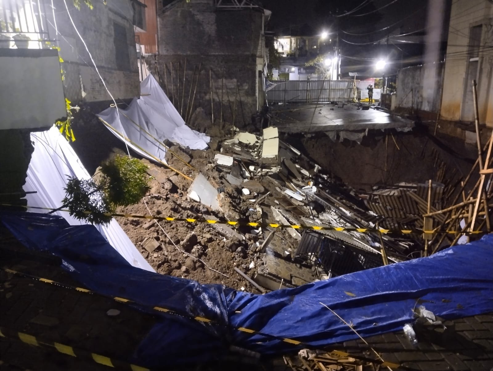 Kemudian pada pukul 11.00 WIB, bangunan dapur renggang dari bangunan induk sekitar 30 sentimeter. “Setelah itu saya kasih info ke pengurus RT dan RW. Yang roboh itu bangunan dua lantai yang jadi tempat pembuatan kue kering,” ucapnya.