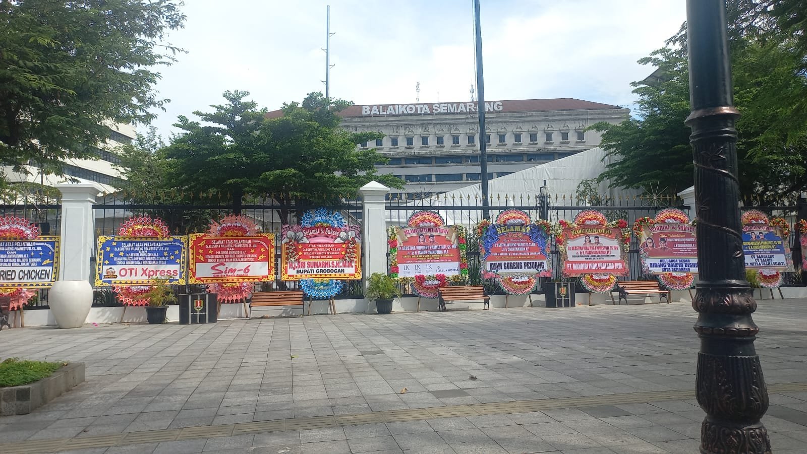 Karangan bunga tersebut, bertuliskan ucapan atas pelantikan Wali Kota Semarang Agustina Wilujeng Pramestuti dan Wakil Wali Kota Semarang Iswar Aminuddin atau yang akrab dipanggil Agustin-Iswar.
