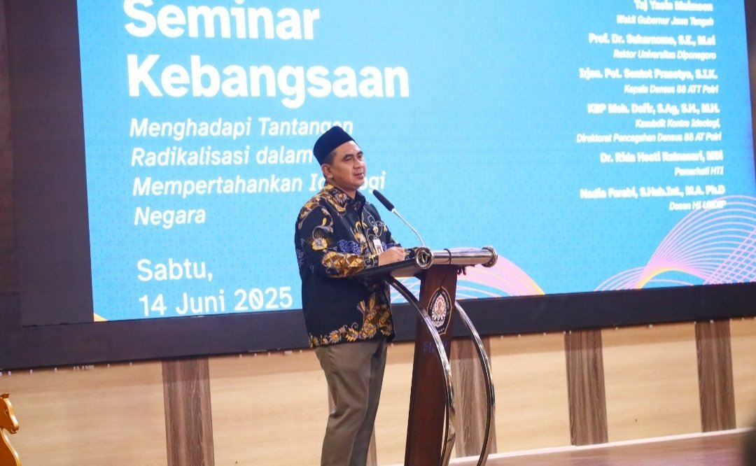 Hal itu disampaikan Wakil Gubernur Jawa Tengah, Taj Yasin Maemoen (Gus Yasin) saat menjadi keynote speech pada “Seminar Kebangsaan Menghadapi Tantangan Radikalisasi dalam Mempertahankan Ideologi Negara”, Sabtu (14/06/2025) di Aula Fisip International Magnificent Encouraging Noble Auditorium (Fimena Fisip Undip).