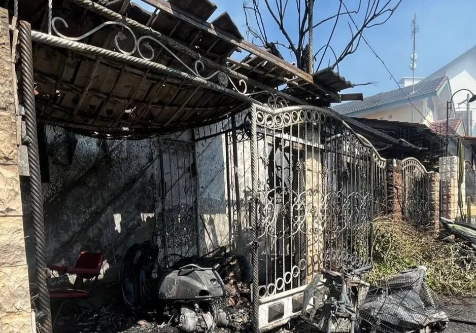 Dijelaskan, kobaran api semakin tak terkendali dengan adanya ledakan yang diduga dari sepeda motor yang turut terbakar.