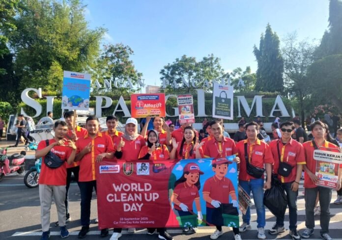 JATENGPOS. CO. ID, SEMARANG- PT Sumber Alfaria Trijaya Tbk (Alfamart) kembali menunjukkan komitmennya terhadap kepedulian lingkungan dengan terlibat langsung dalam aksi bersih-bersih pada peringatan World Cleanup Day (WCD) 2025 yang digelar di CFD Simpang Lima Kota Semarang, Minggu (28/09/2025).
