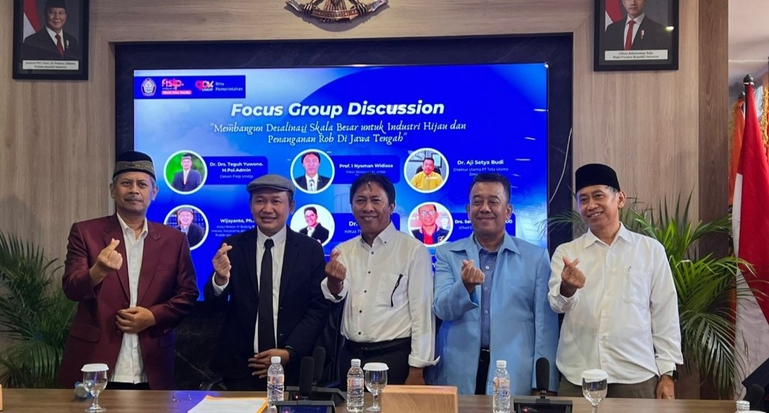 Hal ini mengemuka dalam FGD “Membangun Desalinasi Skala Besar untuk Industri Hijau dan Penanganan Rob di Jawa Tengah“, yang diselenggarakan oleh KBK Departemen Politik dan Ilmu Pemerintahan FISIP Undip pada 29 Oktober 2025.