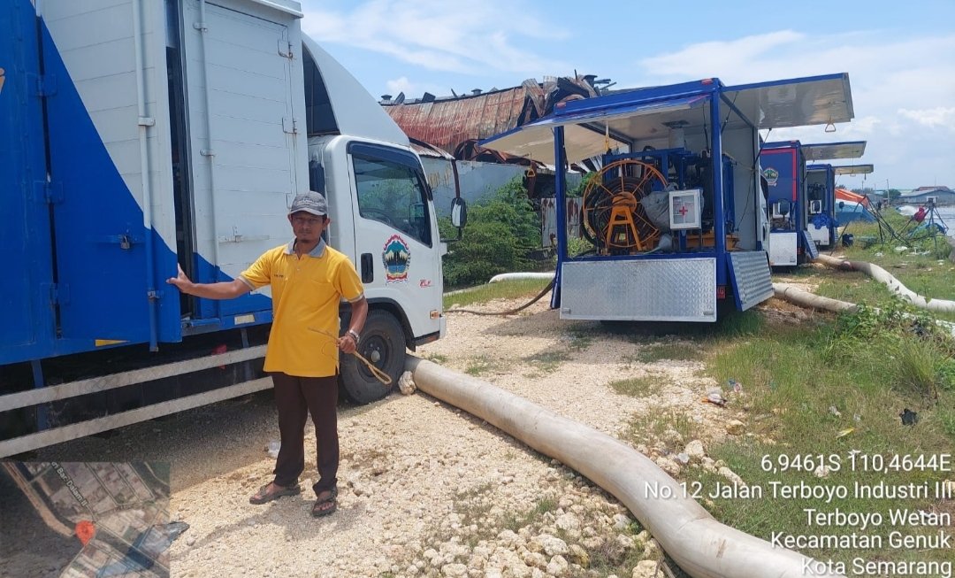 JATENGPOS. CO. ID, SEMARANG – Sebagai salah satu garda depan dalam penanganan banjir di Kaligawe, Kota Semarang, petugas Dinas Pusdataru Provinsi Jawa Tengah bekerja ekstra keras dari pagi, siang, sore, malam, hingga pagi lagi, sejak hari pertama banjir.