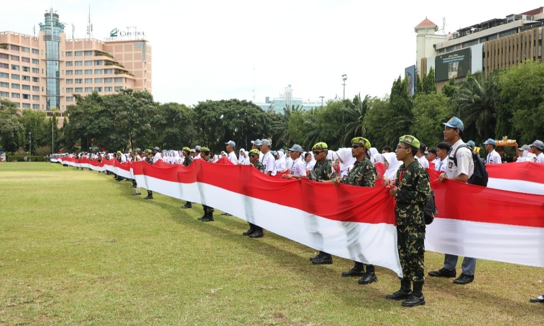 “Pada 2022, kain merah putih yang dikirab sepanjang 1.001 meter, dengan 7.000 panji bendera merah putih. Tahun ini panjangnya mencapai total 1.945 meter, ditambah pengusungan lambang negara Garuda Pancasila setinggi lima meter,” jelasnya.