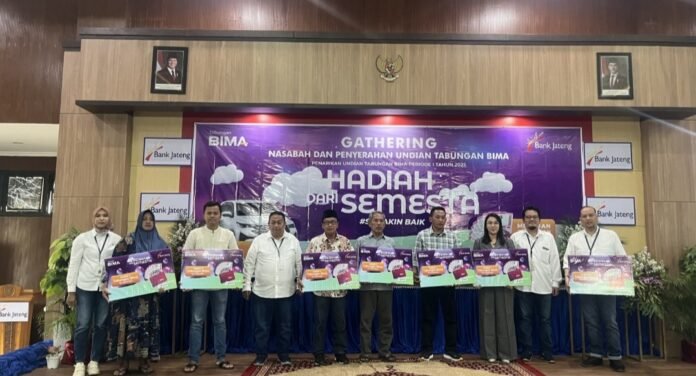 Pemimpin Bank Jateng Cabang Purwodadi, Cahya Imanuddin Firmansyah, menyampaikan bahwa penarikan Undian Tabungan Bima Periode 1 Tahun 2025 telah dilakukan pada 20 Desember 2025 lalu. Program ini merupakan agenda rutin yang dilaksanakan dua kali dalam setahun sebagai bentuk penghargaan kepada masyarakat.