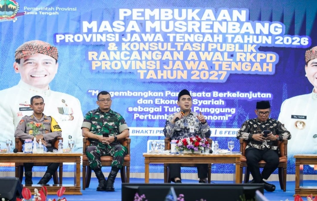Hal tersebut ditegaskan oleh Wakil Gubernur Jawa Tengah, Taj Yasin Maimoen, saat memberikan pengarahan dalam Pembukaan Musyawarah Perencanaan Pembangunan (Musrenbang) 2026,dan Konsultasi Publik Rancangan Awal Rencana Kerja Pemerintah Daerah (RKPD) 2027, di Gedung Gradhika Bhakti Praja, komplek Gubernuran Kota Semarang, Jumat, 6 Februari 2026.