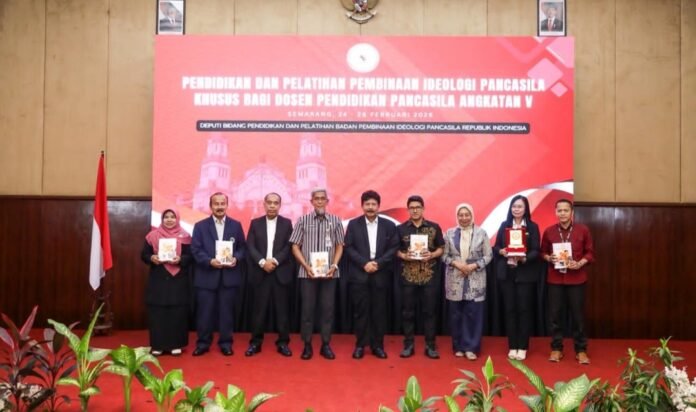 “Nilai ideologi Pancasila itu harus tertanam di teman-teman kita di mahasiswa,” tegas Sumarno saat acara Pembukaan Pendidikan dan Pelatihan Pembinaan Ideologi Pancasila Khusus Bagi Dosen Pendidikan Pancasila Angkatan V di Hotel Novotel Semarang pada Selasa, 24 Februari 2026.