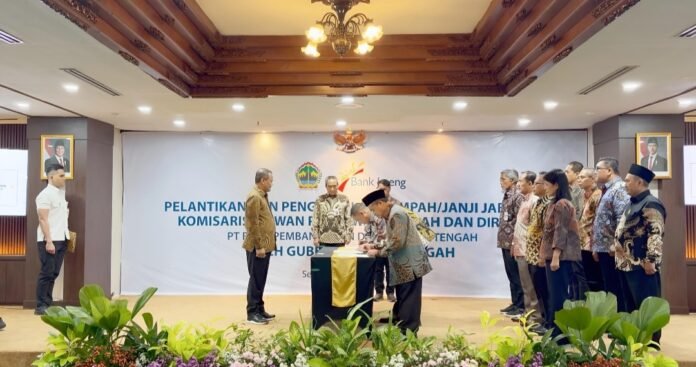 JATENGPOS. CO. ID, SEMARANG – Bank Jateng menandai babak baru perjalanan korporasinya dengan menggelar prosesi pelantikan pengurus baru. Acara khidmat ini dipimpin langsung oleh Gubernur Jawa Tengah Ahmad Luthfi, bertempat di Bank Jateng Kantor Pusat, Kamis (5/3).