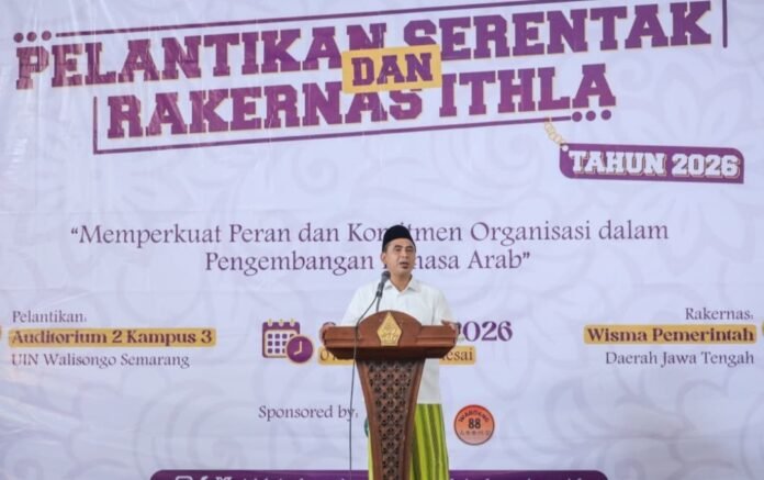 Hal tersebut ditegaskan Gus Yasin, sapaan akrab Wagub, saat menghadiri Pelantikan Serentak dan Rakernas Dewan Pimpinan Persatuan Mahasiswa Bahasa Arab se-Indonesia (ITHLA), di Kampus 3 UIN Walisongo Semarang, Jumat, 3 April 2026.