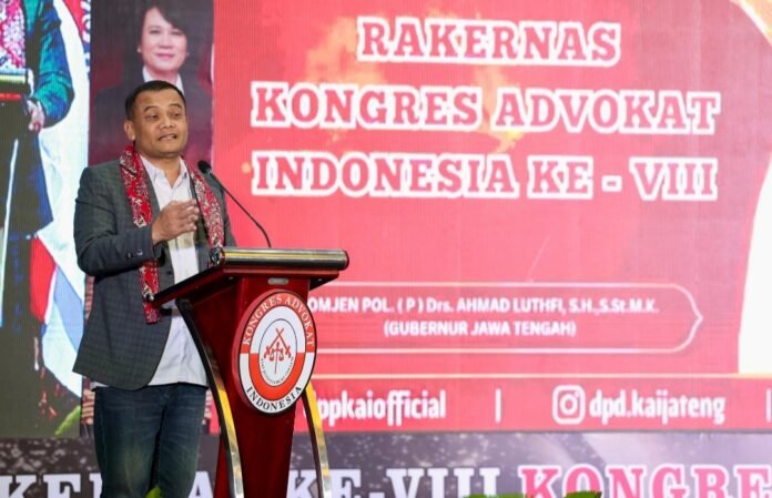 Gubernur Jawa Tengah Ahmad Luthfi yang memimpin bersama Wagub Taj Yasin Maimoen(Gus Yasin), menegaskan, terciptanya keamanan, ketertiban, dan kepastian hukum menjadi prasyarat mutlak dalam membangun wilayah yang maju dan sejahtera. Hal itu ia sampaikan saat menghadiri Rapat Kerja Nasional (Rakernas) ke-VIII Kongres Advokat Indonesia (KAI) di Metro Park View Hotel, Kota Semarang, Jumat (17/4/2026).