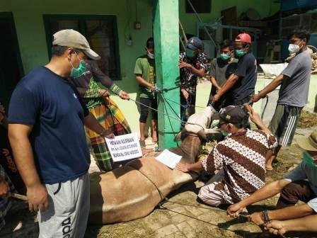 “Tahun ini jumlah hewan sapi qurban menurun, namun untuk kambing lebih banyak. Tetap kami syukuri karena masa pandemi ini kami masih tetap bisa berbagi. Daging qurban ini kita bagikan pada masyarakat sekitar juga, selain untuk para santri,” ungkap Lilis.