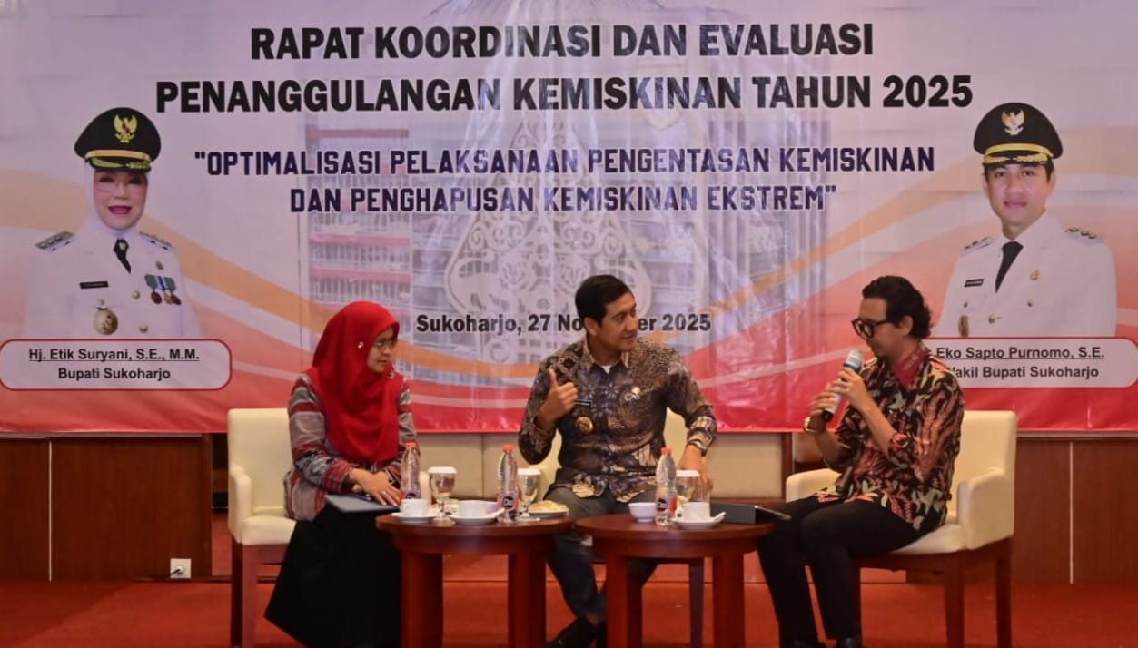 Kepala Bapperida Sukoharjo, Rudiyanto, menyampaikan capaian positif Sukoharjo dalam menurunkan angka kemiskinan. Berdasarkan data BPS tahun 2025, angka kemiskinan Kabupaten Sukoharjo berada di 6,83 persen, turun signifikan 0,64% dari tahun sebelumnya (7,47%).