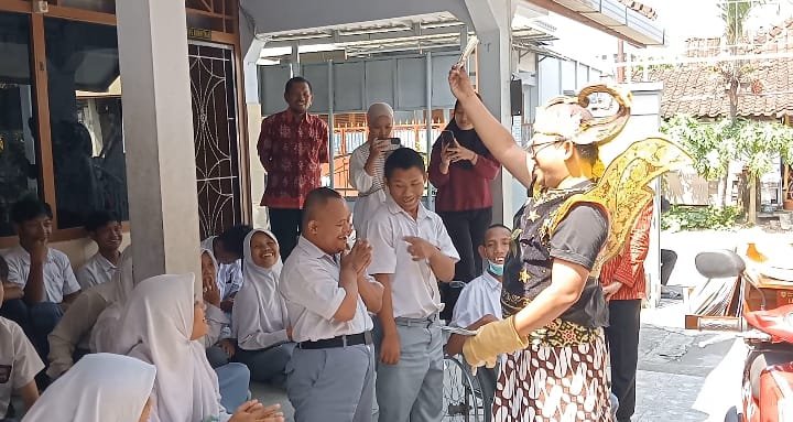 JATENGPOS.CO.ID, SUKOHARJO – Suasana ujian akhir semester di Sekolah Luar Biasa (SLB) Hamong Putro Jombor, Sukoharjo, mendadak berubah menjadi penuh tawa dan keharuan pada Selasa (2/12). Dalam rangka memperingati Hari Disabilitas Internasional (3 Desember), tim Superhero Gatotkaca berkolaborasi dengan mahasiswa pegiat literasi dari BK dan Komunikasi Univet menggelar aksi kejutan.