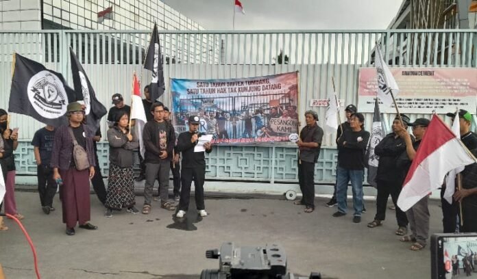 Koordinator aksi, Agus Wicaksono, menegaskan bahwa momen ini merupakan penanda satu tahun para buruh kehilangan mata pencaharian sekaligus menanti kepastian hak pesangon dari kurator.