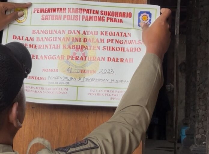 JATENGPOS.CO.ID, SUKOHARJO – Pemkab Sukoharjo didampingi Polres Sukoharjo melakukan penyegelan terhadap sebuah rumah produksi atau pabrik alkohol yang diduga memproduksi miras ilegal jenis ciu, di wilayah Sentul, Bekonang, Mojolaban, Sukoharjo pada Selasa, (21/04/2026).