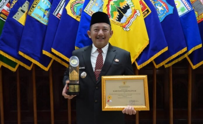 Tampak hadir Gubernur dan Wakil Gubernur Jateng bersama para bupati/wali kota penerima penghargaan. Bupati Karanganyar H. Rober Christanto, S.E., M.M. menerima penghargaan tersebut.