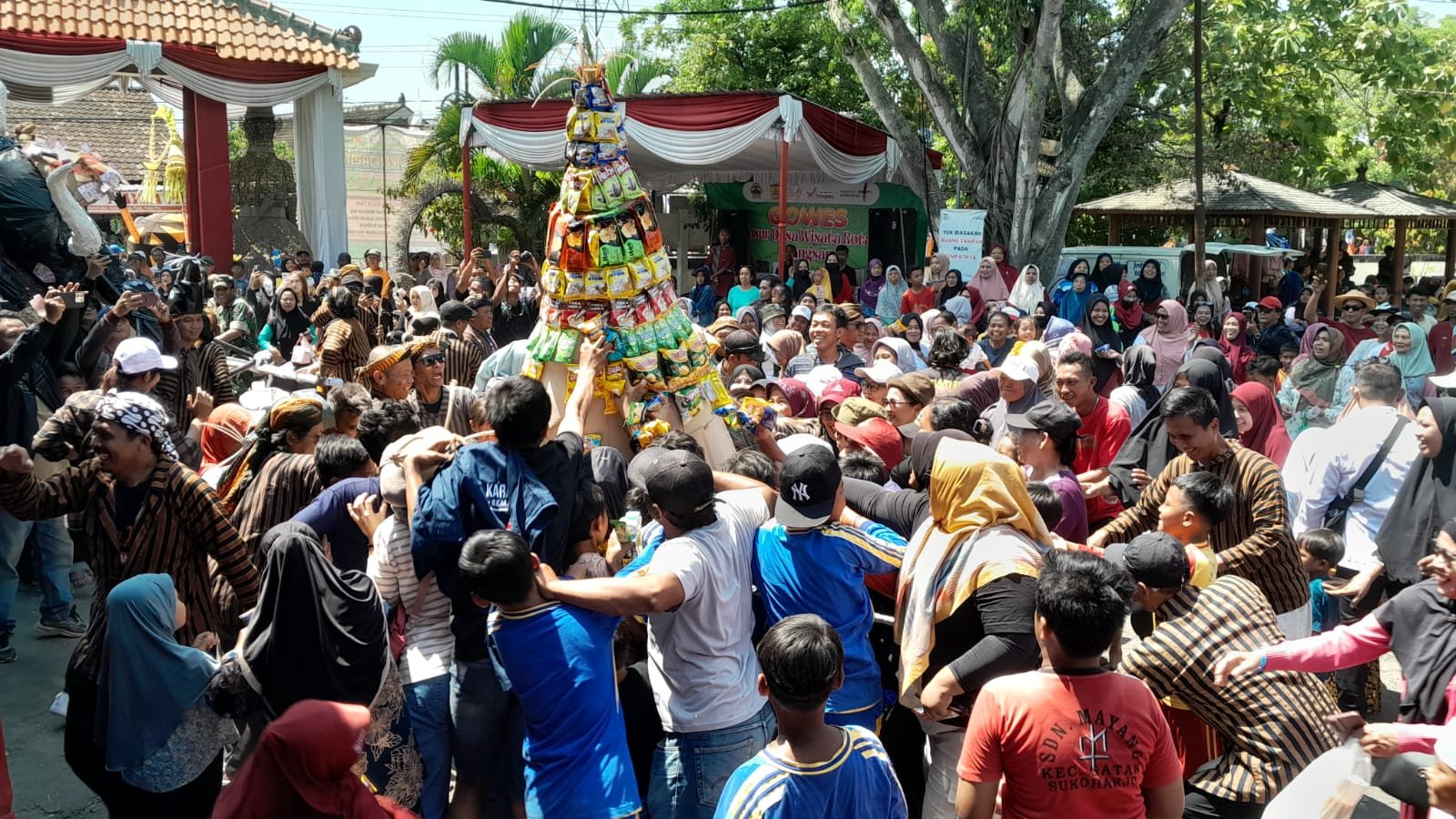 Momen puncak terjadi di halaman kantor kepala desa, sesaat setelah 10 gunungan selesai diarak sejauh satu kilometer menyusuri jalan kampung. Masyarakat yang telah menunggu langsung menyerbu gunungan tersebut, hingga isinya ludes hanya dalam waktu dua menit.