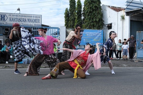 JATENGPOS.CO.ID, SUKOHARJO – Keramaian Car Free Day (CFD) Kartasura pada Minggu (11/1) pagi diwarnai dengan pemandangan unik dan menarik. Sejumlah seniman dari Indonesia, Jepang, dan Taiwan menampilkan tarian diiringi musik langsung, dalam rangka Pre-Event International Rain Festival (IRF) 2026.